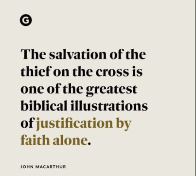 Penjahat yang mendapatkan keselamatan saat ia dipaku di kayu salib adalah salah satu ilustrasi alkitabiah terbesar mengenai dibenarkan semata oleh iman.