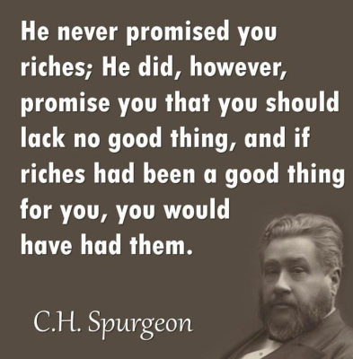 Ia tidak pernah menjanjikan Anda kekayaan; namun, Ia menjanjikan Anda bahwa Anda tidak akan kekurangan hal-hal yang baik, dan kalau kekayaaan adalah hal yang baik untuk Anda, maka Anda tentu akan memilikinya.