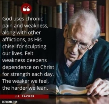 Tuhan menggunakan rasa sakit yang kronis dan kelemahan, disertai dengan penderitaan lainnya, sebagai alat pahat-Nya untuk memahat kehidupan kita. Dengan merasakan kelemahan, kebergantungan kita kepada Kristus untuk mendapatkan kekuatan setiap hari akan semakin kuat. Semakin kita merasa lemah, semakin teguh kita bersandar.