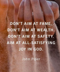 Jangan membidik ketenaran, jangan membidik kekayaan, jangan membidik rasa aman, bidiklah sukacita yang-memuaskan di dalam Tuhan.