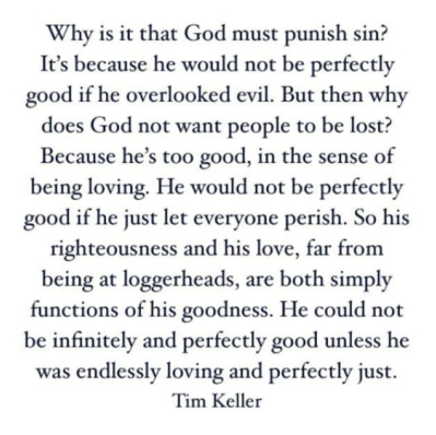 Mengapa Tuhan harus menghukum dosa? Sebab Ia tidak akan disebut baik sempurna jika Ia tidak melihat kejahatan. Namun mengapa Tuhan tidak ingin manusia terhilang? Karena Ia terlalu baik, pengasih. Ia tidak akan disebut baik sempurna jika Ia membiarkan setiap orang binasa. Maka kebajikan-Nya dan kasih-Nya adalah sifat alami kebaikan-Nya, jauh dari perselisihan. Ia tidak dapat disebut tidak terbatas dan baik sempurna kecuali Ia tidak putus-putusnya mengasihi dan adil sempurna.