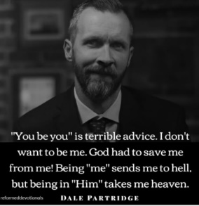 “Menjadi dirimu sendiri” adalah nasihat yang buruk. Saya tidak ingin menjadi diri saya sendiri. Allah harus menyelamatkan saya dari saya! Sebagai “saya” akan mengirim saya ke neraka, tapi menjadi saya di dalam “Dia” membawa saya ke surga.