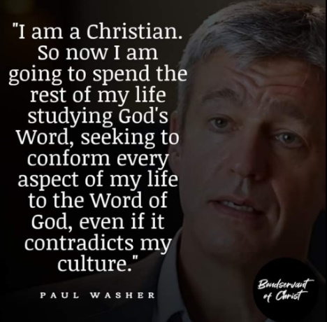 “Saya seorang Kristen. Jadi sekarang saya akan menghabiskan sisa hidup saya untuk mempelajari Firman Allah, berusaha untuk menyesuaikan setiap aspek hidup saya dengan Firman Allah, meskipun jika itu bertentangan dengan budaya saya.” (Paul Washer)