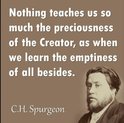 Tidak ada yang mengajarkan kita begitu berharganya Sang Pencipta, seperti saat kita mengetahui tentang kekosongan dari semua hal lainnya selain Sang Pencipta. (C.H. Spurgeon)